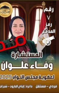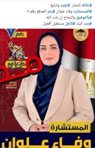تخوض المستشارة وفاء علوان السباق الانتخابي لعضوية مجلس النواب المصري، حاملة الرقم (7) ورمز المدفع، تحت شعارها الإنساني والمعبّر:«معًا نصنع غدًا يليق بكرامة المواطن».