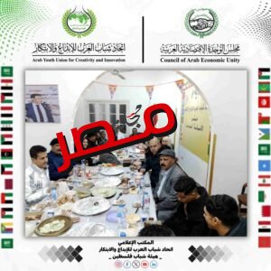تحت رعاية رئيس الاتحاد العميد علي محمد القحيف، أقامت هيئة شباب فلسطين في اتحاد شباب العرب للإبداع والابتكار حفل إفطار جماعي لأعضاء الاتحاد والمكاتب والهيئات العاملة ضمن نطاقه، والمنضوي تحت مظلة مجلس الوحدة الاقتصادية بجامعة الدول العربية