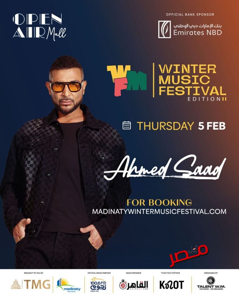 5 فبراير.. أحمد سعد وليجسي يختتمان مهرجان «شتاء مدينتي» بأوبن إير مول